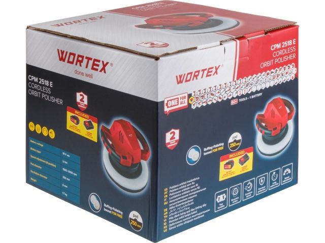 Аккум. полировальная машина WORTEX CPM 2518 E в кор. ALL1 с акб и з/у МЕГА АКЦИЯ (18 В, 250 мм, 1500-3000 об/мин)