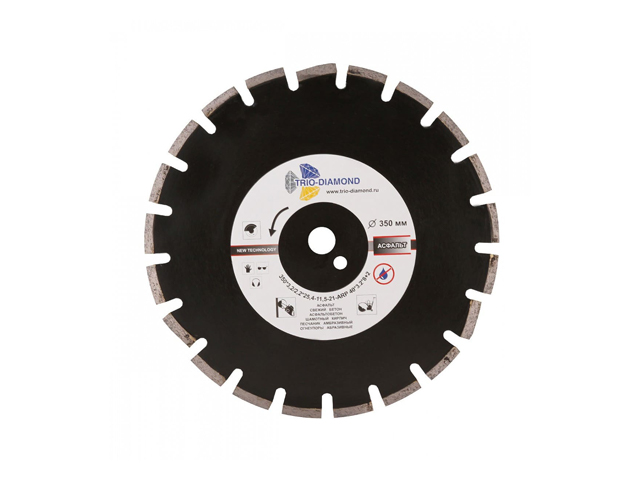 Круг алмазный 350х25,4 мм TRIO-DIAMOND Grand Asphalt (GA773) подходит для резки асфальта, асфальтобетона, свежий бетона, песчаника. Толщина режущей кромки 3,5 мм. Глубина реза 120 мм. Применяется как с водяным охлаждением, так и без. Технология производства: горячее прессование.