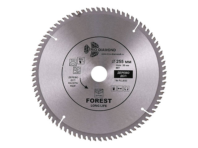 Диск пильный 185х30/20/16 мм 48 зубьев TRIO-DIAMOND Forest Long Life (FLL828) предназначен для распила древесины, ДСП, фанеры. Угол заточки 15 градусов. Максимальное число оборотов 8200 RPM.