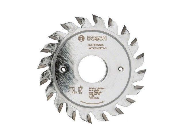 Диск пильный 80х20 мм 10+10 зубьев BOSCH Best for Laminated Panel (2608642126) изготовлен из высокопрочной стали и имеет твердосплавные зубья, которые гарантируют высокую точность пропила, а специальное покрытие минимизирует износ режущей кромки и налипание остатков клеев и смол, а также защищает диск от коррозии и охлаждает его. Все это обеспечивает надежность и долговечность даже при интенсивном использовании. Диск применяется с горизонтальными/вертикальными форматными и настольными циркулярными пилами. Зубья имеют ширину 2,8 мм, но они поочередно смещены относительно линии реза (10 – левее, 10 – правее), поэтому ширина пропила равна 3,6 мм. Благодаря такой конфигурации достигается максимальная точность пропила с чистыми кромками в щитовых материалах с одно- или двусторонним абразивным покрытием.