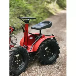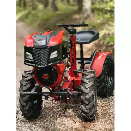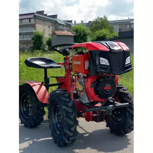 Минитрактор дизельный Storm 152D LUX Premium может перевозить грузы до 1000 кг на скорости до 20 км/ч. В комплект поставки кроме колес, входят 8 почвофрез с шириной захвата до 130 см, аккумулятор, сцепку с сошником, защитный капот, две фары, бардачёк, набор ключей, защитные крылья и откидную подставку для фиксации техники в горизонтальной плоскости.