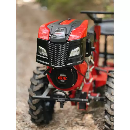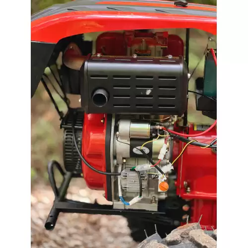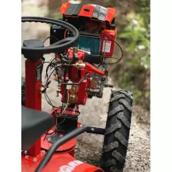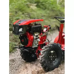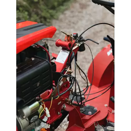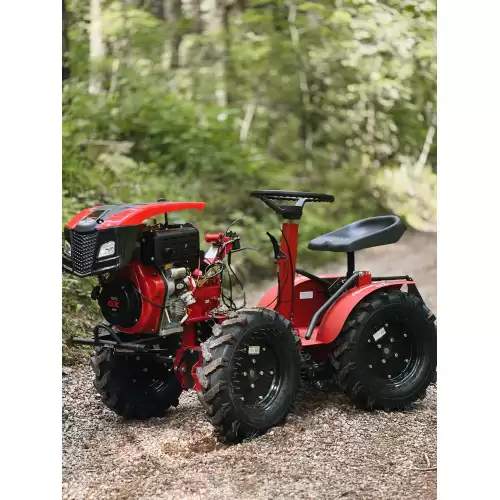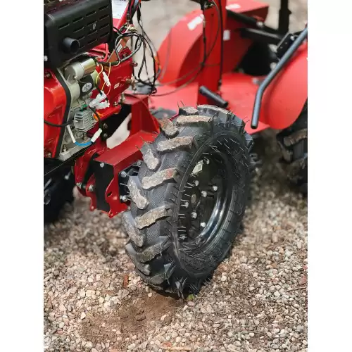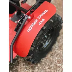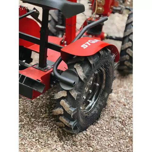 Минитрактор дизельный Storm 152D LUX Premium оборудован многодисковым сцеплением с коробкой передач обеспечивающей п 3 скорости вперёд либо 1 назад, а также полным приводом 4 на 4. Инновационная система сцепления обеспечивает плавный и безопасный привод. Усиленный шестеренчатый редуктор выполнен из высокопрочного чугуна, обеспечивает высокий КПД передачи крутящего момента на фрезы или пневмоколеса. Пневмоколеса входящие в комплект поставки имеют большой диаметр и ширину (7,5/12 дюймов). Благодаря таким большим колесам, мотоблок обеспечивает высокую устойчивость и скорость передвижения при подсоединении транспортировочной телеги.
