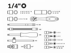 | Назначение | многофункциональный набор предназначен для ремонта и обслуживания автомобиля, а также для выполнения других слесарных работ |