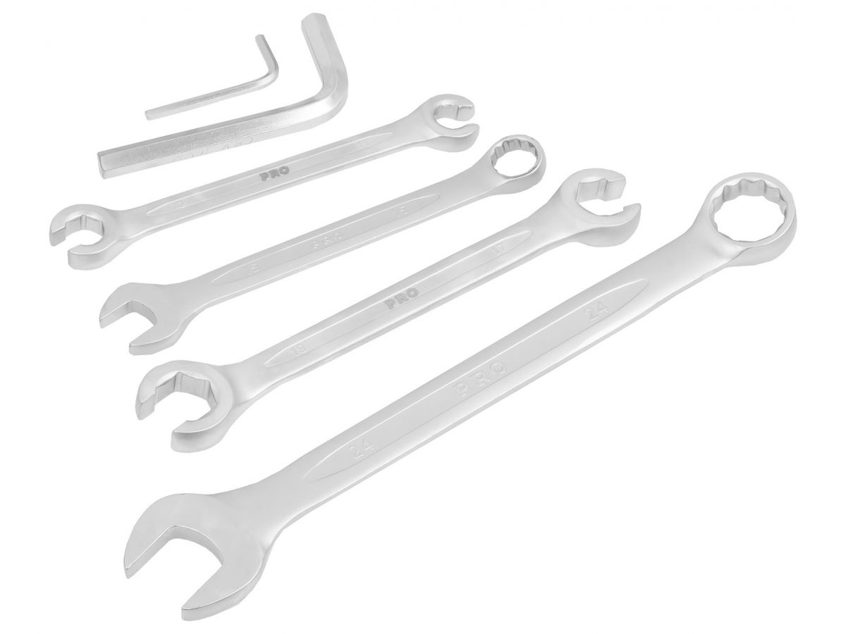 Ключ комбинированный: 6, 7, 8, 9, 10, 11, 12, 13, 14, 15, 16, 17, 18, 19, 21, 22, 24 мм;