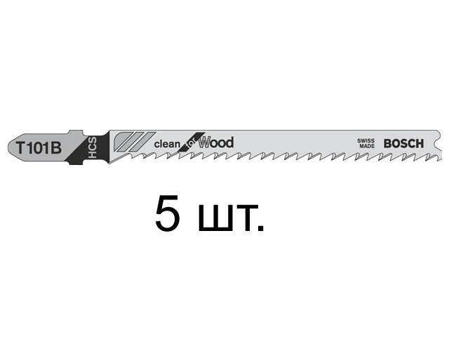 Пилка лобз. по дереву T101B (5 шт.) BOSCH (пропил прямой, тонкий, аккуратный и чистый рез)