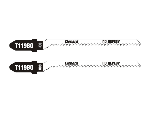 Пилка для лобзика T119BO 2 штуки GEPARD (GP0620-12) для криволинейных пропилов в мягкой древесине (2 - 15 мм), ДСП, столярных плитах, ДВП. Являются сменным пильным элементом для электролобзиков. Волнистые, фрезерованные зубья. Длина рабочей части 50 мм.