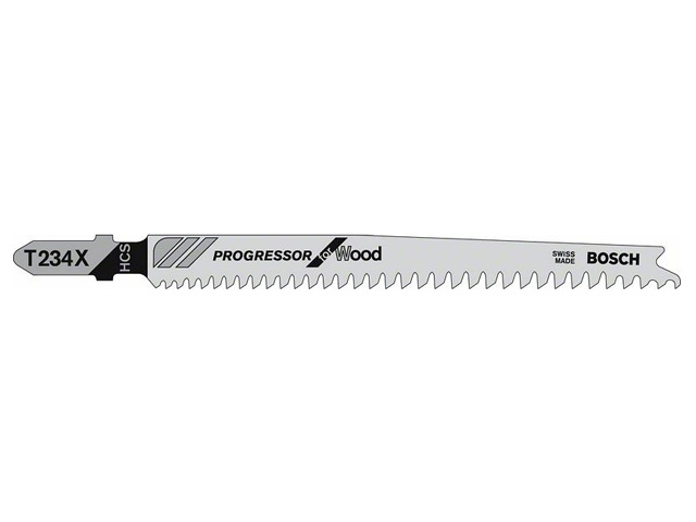 Пилка для электролобзика BOSCH Progressor for Wood T234Х (2608633A41) для толстой или тонкой древесины позволяет выполнять чистые прямые пропилы. Геометрия зубьев с прогрессивно увеличивающимся шагом позволяет применять полотно для материалов различной плотности. Сочетание сужающейся формы тела полотна, гладко шлифованных зубьев и японской геометрии зубьев многократной заточки обеспечивает чистое пиление. Полотно из высокоуглеродистой стали подходит для пиления мягкой древесины и неабразивных древесных материалов. Средний прогрессивный шаг зубьев (2–3 мм) и длина (117 мм) позволяют пилить широкий спектр древесных материалов толщиной 3–65 мм. Для лобзиков с системами крепления с Т-образным хвостовиком.