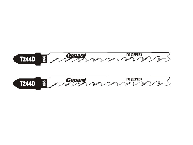 Пилка для лобзика T244D 2 штуки GEPARD (GP0640-06) для быстрых криволинейных пропилов в мягкой древесине (5 - 50 мм), ДСП, столярных плитах, ДВП. Являются сменным пильным элементом для электролобзиков. Разведенные, шлифованные зубья. Длина рабочей части 75 мм.