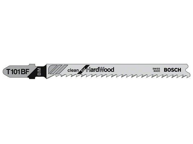 Пилка для электролобзика BOSCH Clean for Hard Wood T101BF (2608634988) позволяет выполнять чистые прямые пропилы в древесине. Гладко шлифованные зубья с телом сужающейся формы обеспечивают ровный результат. Полностью закаленная полоска зубьев из HSS (быстрорежущая сталь) соединена с корпусом из высокоэластичной HCS (высокоуглеродистая сталь), что делает это биметаллическое (BIM) полотно пригодным для резки твердых материалов, например твердой древесины и абразивных древесных материалов. Мелкий прогрессивный шаг зубьев (2,7 мм) полотна позволяет пилить различные древесные материалы толщиной 3–30 мм. Для лобзиков с системами крепления с Т-образным хвостовиком.