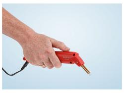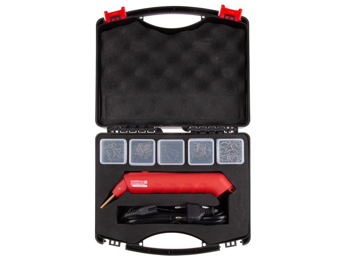 В 2 сопла, которые выходят из корпуса, вставляется металлическая скоба, под воздействием температуры она нагревается и помещается в трещину, образовавшуюся в пластике, с целью её устранения.Напряжение сети, В: 230;