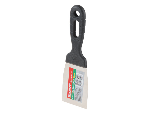 Шпатель фасадный нержавеющий 40 мм ВОЛАТ (34040-40) - основной инструмент при внутренней отделке помещений, представляет собой металлическую пластину трапециевидной формы с эргономичной пластиковой ручкой, предназначен для нанесения шпаклевочных и клеевых смесей на обрабатываемую поверхность: стены, пол, потолок. Может применяться для снятия старых обоев или краски.