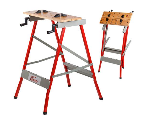 Многофункциональное устройство для облегчения обработки различных заготовок. В верстаке так же имеется функция тисков. Верстак легко хранить и перевозить, благодаря складной конструкции. Предусмотрены отверстия в столешнице для надежной фиксации заготовок. Возможно использовать для закрепления инструмента. Имеет надежную металлическую конструкцию выдерживающую равномерную нагрузку в 70кг !